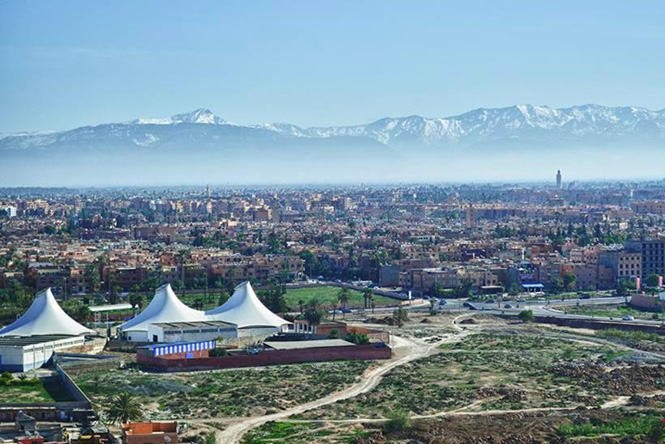 Ainda estou a meio do percurso para atingir o meu destino, ao passar a velha Gueliz, onde se vê a evocação dos 100 anos de história deste bairro (1913-2013). O primeiro bairro “europeu” que hoje se mestiça com os indígenas, outrora segregados. Um pequeno posto de polícia sinaleiro, marca o centro de Marraquexe, uma espécie de Arco do Triunfo, sem a máscara da monumentalidade. A partir deste ponto temos acesso às múltiplas dimensões culturais da cidade: a medina, a modernidade, o campo, os subúrbios, a estrada de Casablanca, a estrada de Essaouira.