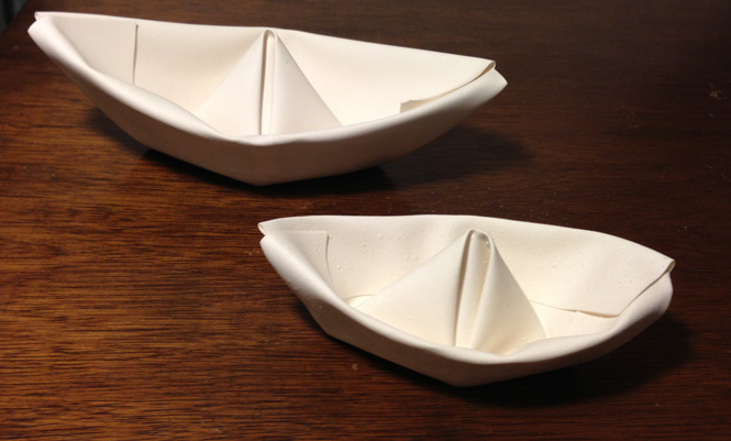 Barcos origami da Stefania Barale em porcelana – €75 e €95 na Amasso Cerâmica
