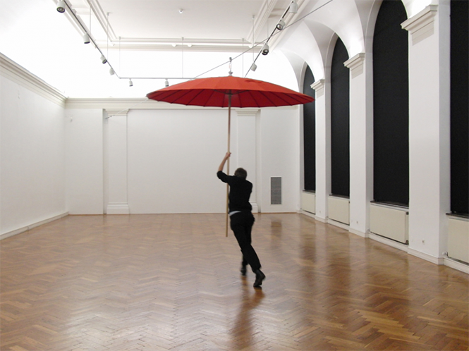 A artista Katharina Lackner, que inicia o percurso, inclui-se nestes três binómios através de Slide, um chapéu-de-chuva de enormes dimensões que nos transporta para o lugar da infância, como se fossemos personagens em histórias como as Viagens de Gulliver ou a Alice no País das Maravilhas.